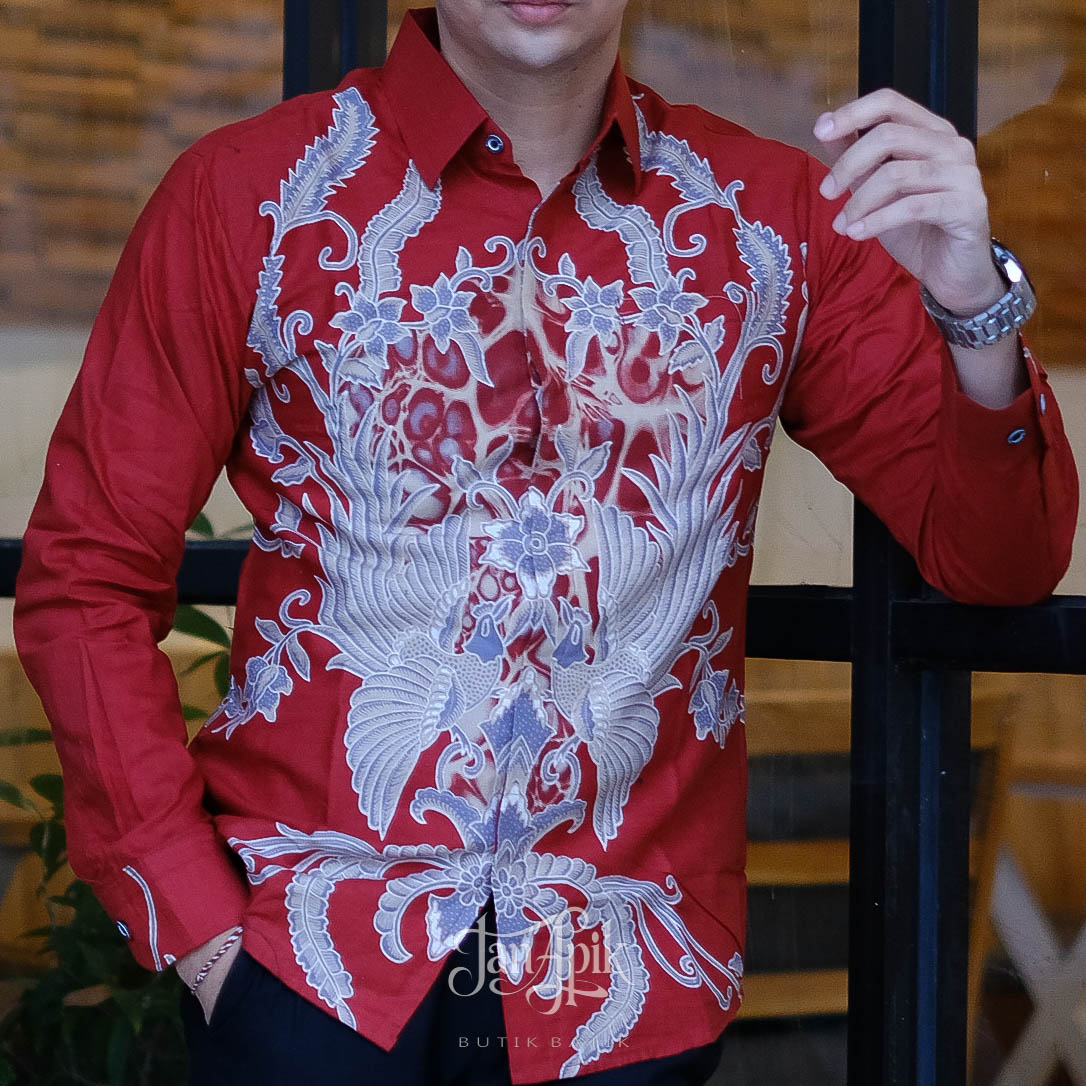 Kemeja Batik Pria Lengan Panjang, Motif Wahyu Arunika, Nyaman & Elegan Warna Merah